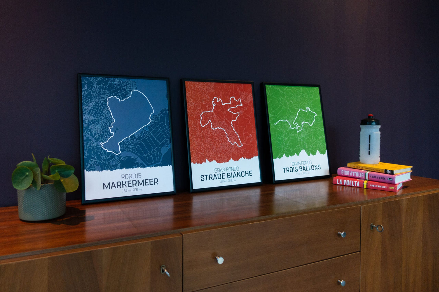 Met een Rideposter herbeleef je de rit. De adrenaline, de pijn, de snelheid, je benen, de views, de tegenwind, de stijgingspercentages, de snelheid, de wattages, de voldoening en de grootspraak achteraf.
